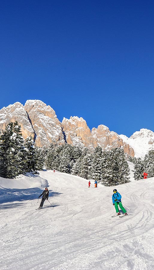 Within a few minutes' drive towards Ortisei, you can reach the Seiser Alm/Alpe di Siusi, Seceda, or Resciesa. Alternatively, heading towards Santa Cristina, you can access to Col Raiser or challenge yourself on the famous Sellaronda starting from the Sasslong.